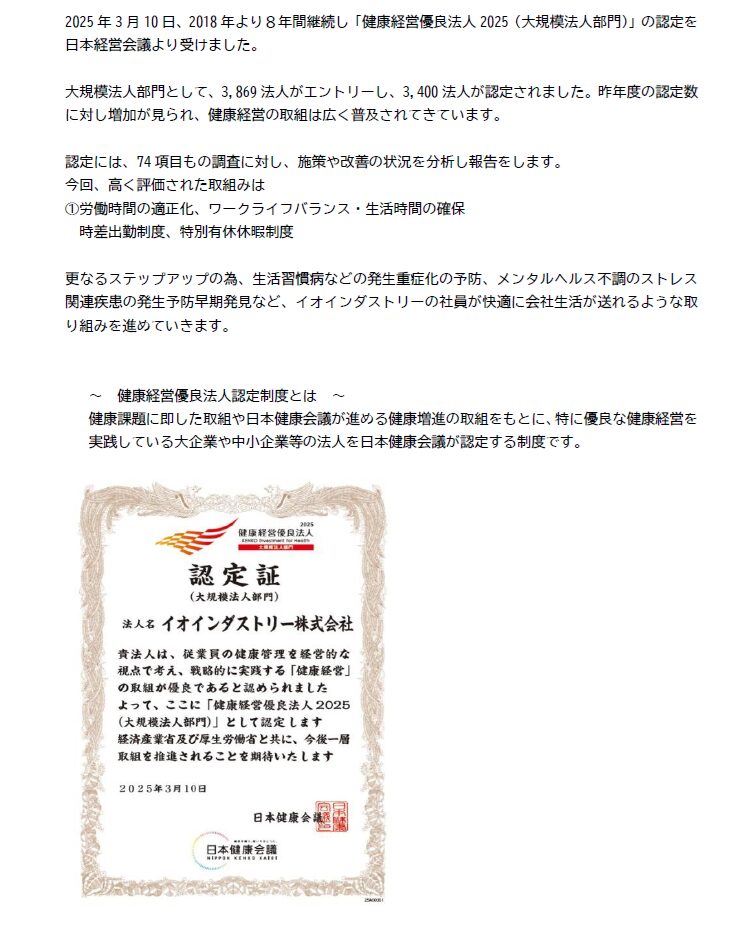 ~2018年より8年間継続し「健康経営優良法人2025(大規模法人部門)」 の認定~