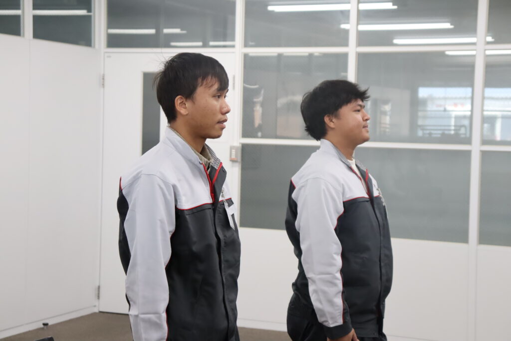 2026年2月23日、第16期ミャンマー実習生の入社式が行われました。今回は、男性2名が入社されました。岩田社長より激励のお言葉、忠内親睦会長より歓迎の挨拶をいただき、実習生を代表してスワン テッ アウンさんより、力強い決意表明がありました。